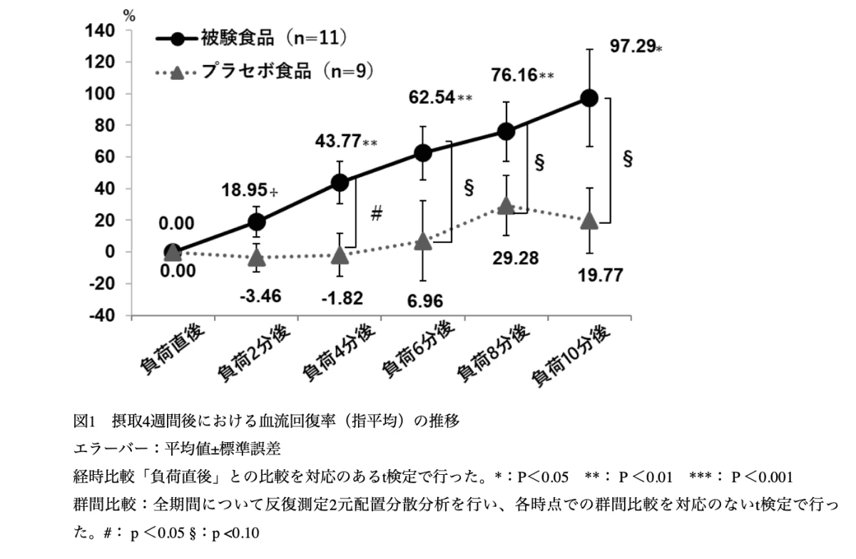 ・青みかんエキスを飲んだグループは、冷たい水につけた後の手の温度の回復が早くなった(血流も改善傾向)